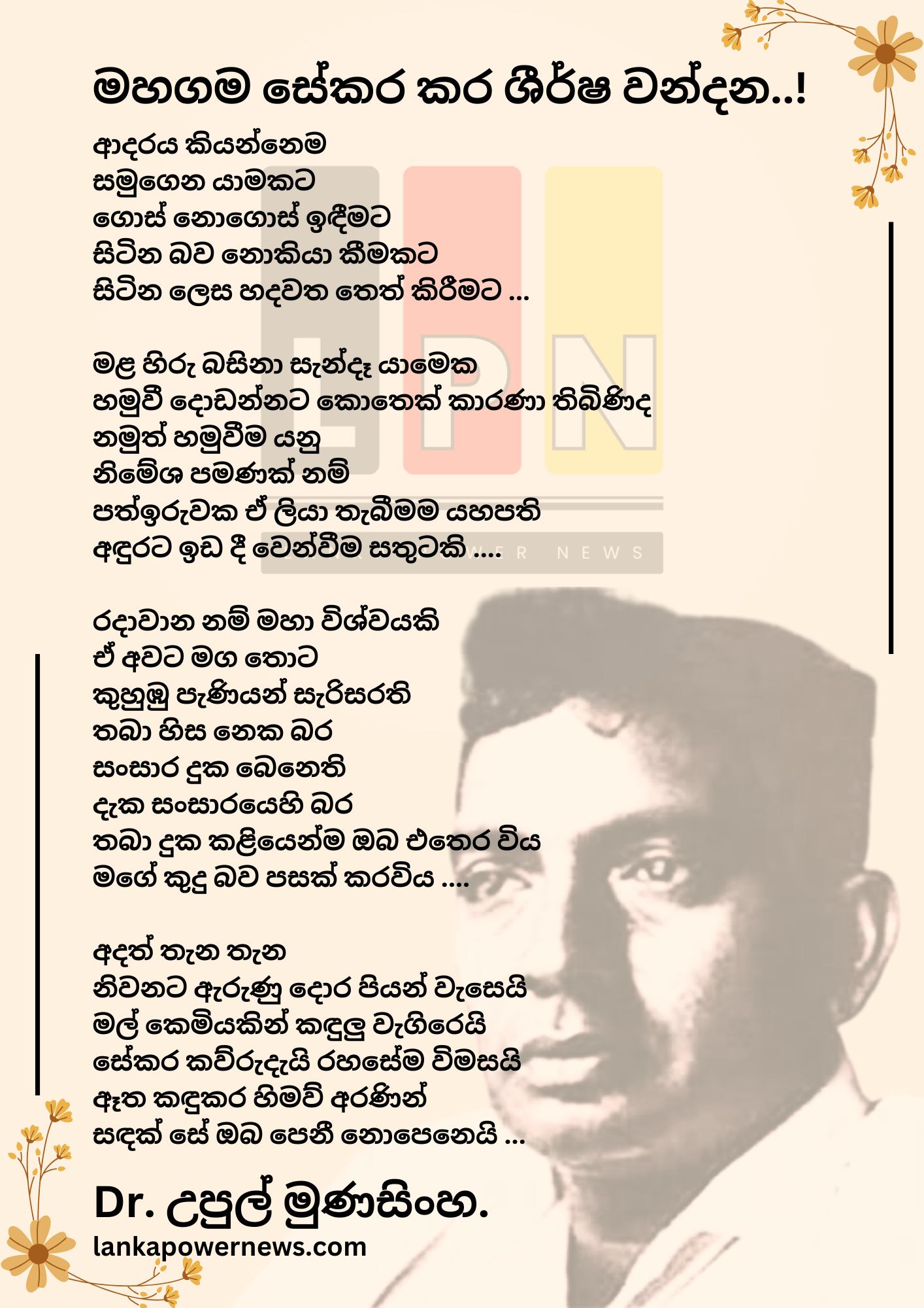 මහගම සේකර ශීර්ෂ වන්දන..!