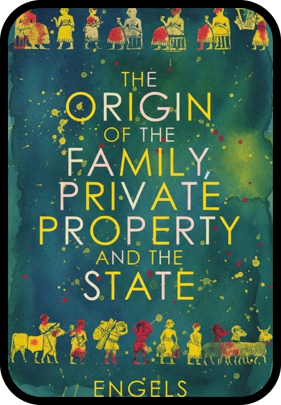 ” නෑ, ත ව කීපදෙනෙක් ඉන්නවා. ඉන් ප්රධානම කෙනෙක් තමයි, බහෝපන්. බහෝපන්ගේ ” මවු අයිතිය” කියන පොත ඉතාම වැදගත් වුණා. මේ පොත ක්රි. ව. 1861 දී පලකරන්නේ. මේ පොත මගින් තමයි පවුලේ ඉතිහාසය හැදෑරීම ඉස්සරවෙලා ම පටන්ගන්නේ. ඒ නිසා මේ පොත එංගල්ස් ට ඉතාම වැදගත් වුණා .”